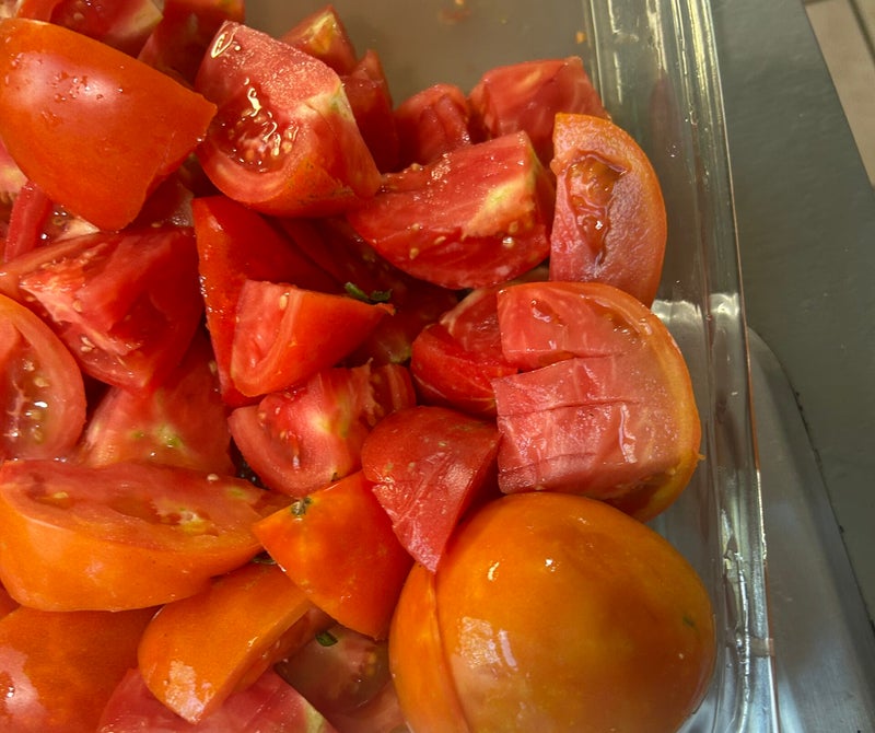 The final method I am going to talk about is to: Start by blanching the tomatoes. After you wash the tomatoes cut a small 'X' on the bottom of each tomato, then immerse them in boiling water for about 30 seconds. Transfer them immediately to an ice bath. Once cooled, peel off the skins, core, and chop the tomatoes.