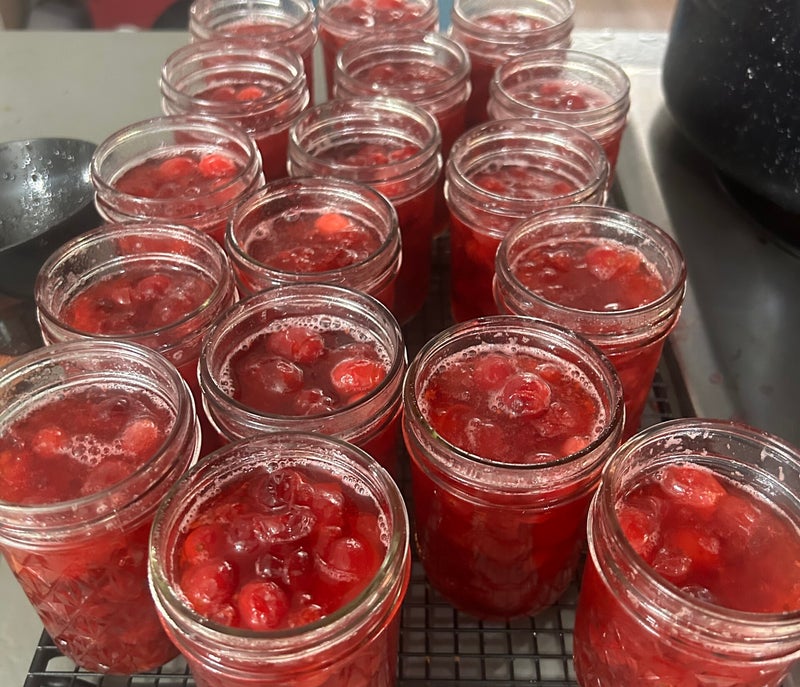 If you are like me and you enjoy the taste of cranberries but you are not a fan of buying the cranberry sauce in a can then I have a recipe for you. I was at our local Aldi’s store and they had 12 ounce bags of cranberries for $1.00 a bag. I picked up 5 bags and some sugar and quickly headed home to start canning. I knew with Thanksgiving and Christmas right around the corner, having this already made would free up some time during the busy holiday season. In years past I typically put a few bags of cranberries in the freezer and fix them for Easter, (I enjoy cranberries with ham).