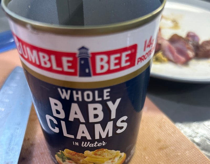 - 2 10.5-ounce cans of clams (save the juice for later)