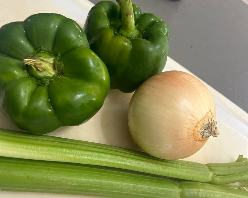 - In the same pot, add the chopped onion, bell pepper, and celery. Sauté until the vegetables are softened, about 5 minutes. Add the minced garlic and cook for another minute.