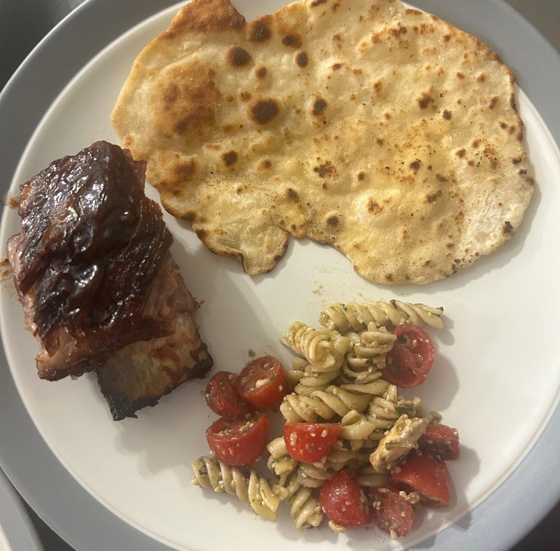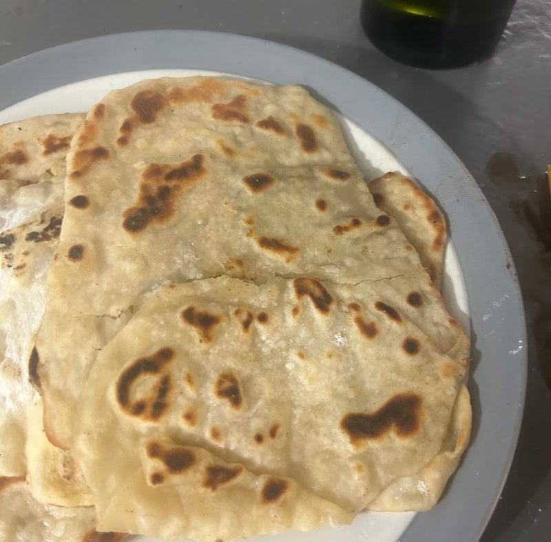 Here’s a simple recipe to guide you through the process we used to make our own naan bread. Some recipes will add some yeast to the dough and let it rise. I would add about 1 teaspoon to this recipe if you wanted a fluffier naan bread.