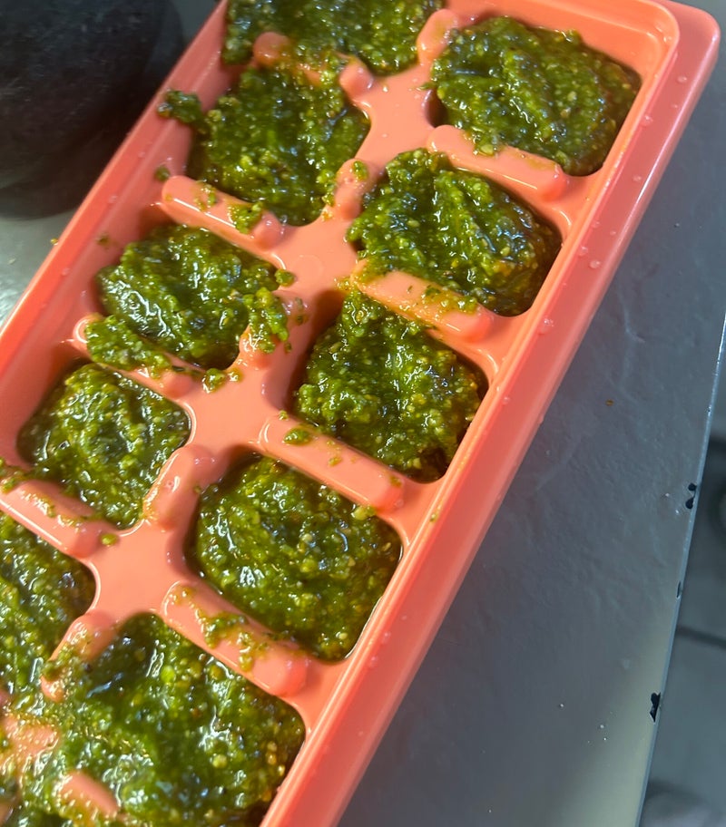 Pesto sauce freezes exceptionally well, making it a great option for preserving the vibrant flavors of summer basil for use throughout the year. To freeze, you can use ice cube trays for convenient, single-serving portions. Simply spoon the pesto into the trays, freeze until solid, then transfer the cubes to a resealable plastic bag or airtight container. When you're ready to use the pesto, thaw it in the refrigerator or at room temperature. This delicious is ready to enhance your pasta, garlic bread, sandwiches, or any dish that could use a burst of herby goodness.
